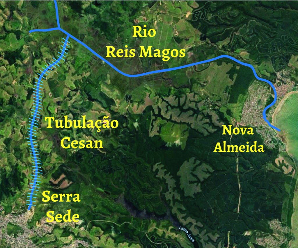 O problema é que no local escolhido para a captação, Putiri, chegam águas do mar nas marés mais altas e em tempos de estiagem, quando o rio fica mais fraco e a água doce não consegue ‘empurrar’ as águas do mar, que entram a partir da foz do Reis Magos em Nova Almeida.