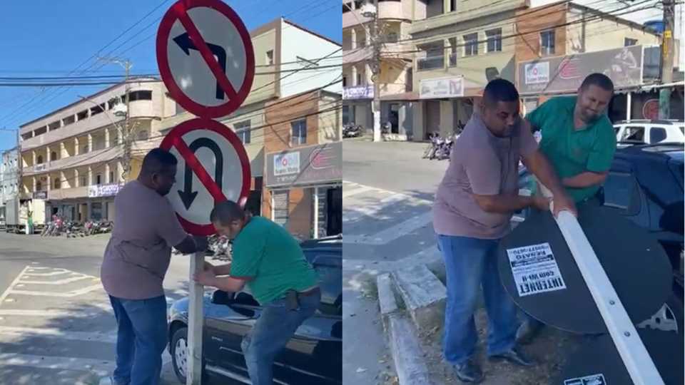 Em outro vídeo, Jefinho seguiu um pouco mais a frente, na região próxima a EDP, e colocou a placa no “lugar certo”. “Aqui sim é proibido fazer o retorno. Agora a placa está no lugar certo”, disparou o vereador.