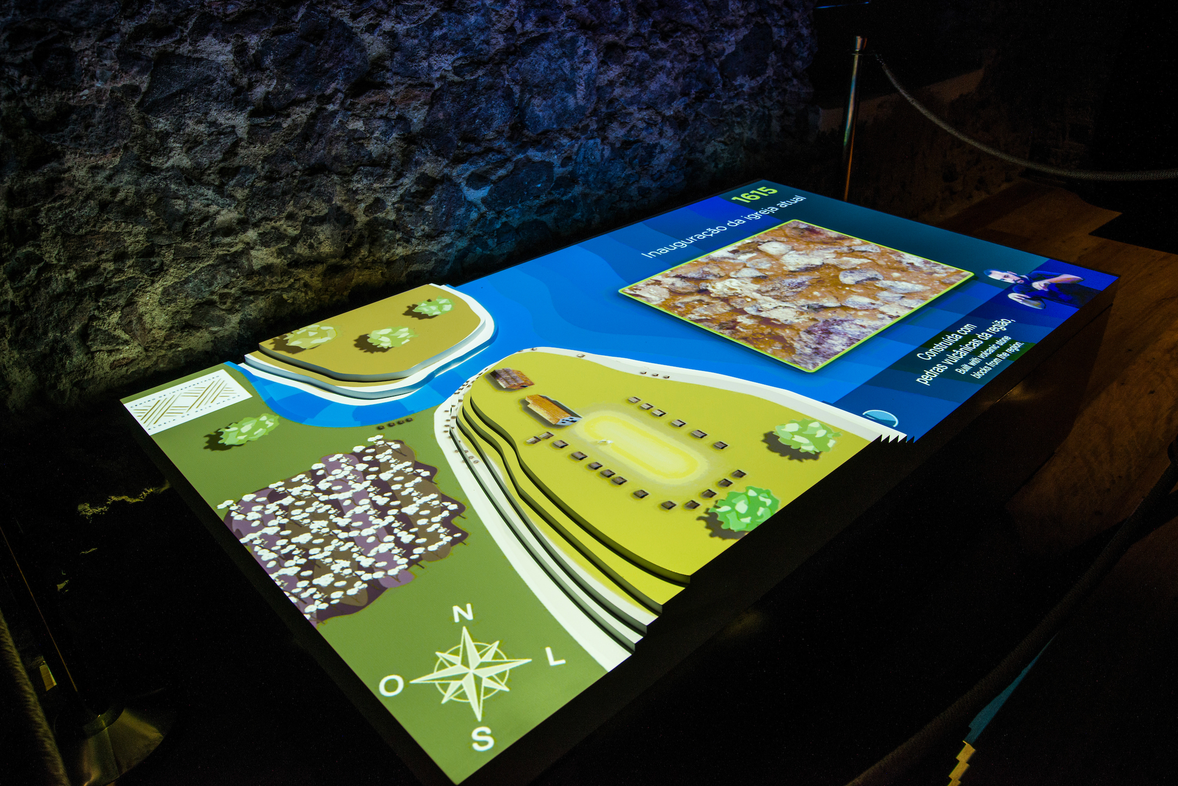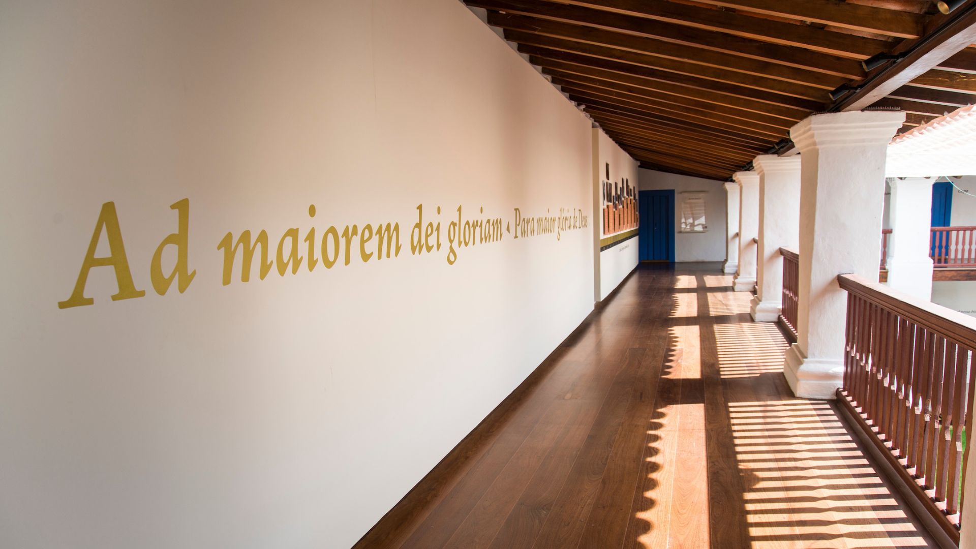 Recepção: espaço de acolhimento, a Recepção traz na entrada a frase de quase cinco séculos, do criador da Companhia de Jesus, Santo Inácio de Loyola: ‘Se pretende consertar o mundo comece por si mesmo”. A mensagem mostra a importância da reflexão, do conhecimento e do respeito a cultura local, presentes no conceito dos Jesuítas. O espaço, com imagens antigas, arte contemporânea e sonoplastia transporta os visitantes para a história, impactando-os logo na chegada. Nesta e na sala seguinte, a do Pertencimento, a sonoplastia se destaca. Após processo de pesquisa, gravação, mixagem e masterização são exibidas três horas de músicas. O repertório reúne músicas sacras do Brasil Colonial, canções tradicionais e orações em tupi-guarani. Santo Inácio de Loyola fundou a Companhia de Jesus em 1540 para levar a palavra de Cristo aos pagãos das terras recém-descobertas e a música foi usada no trabalho com os indígenas.