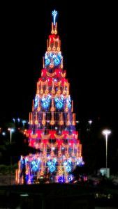 A árvore, construída em parceria com a iniciativa privada, tem 45m de altura, cinco a mais que a do ano passado, e equivalente a um prédio de 15 andares. Outra novidade é que ela contará com lâmpadas de Led que mudarão de cor em um show de luzes e figuras luminosas.