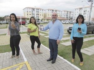 O síndico Wesley Mello com moradoras do condomínio Praça Reserva. Foto: Fábio Barcelos