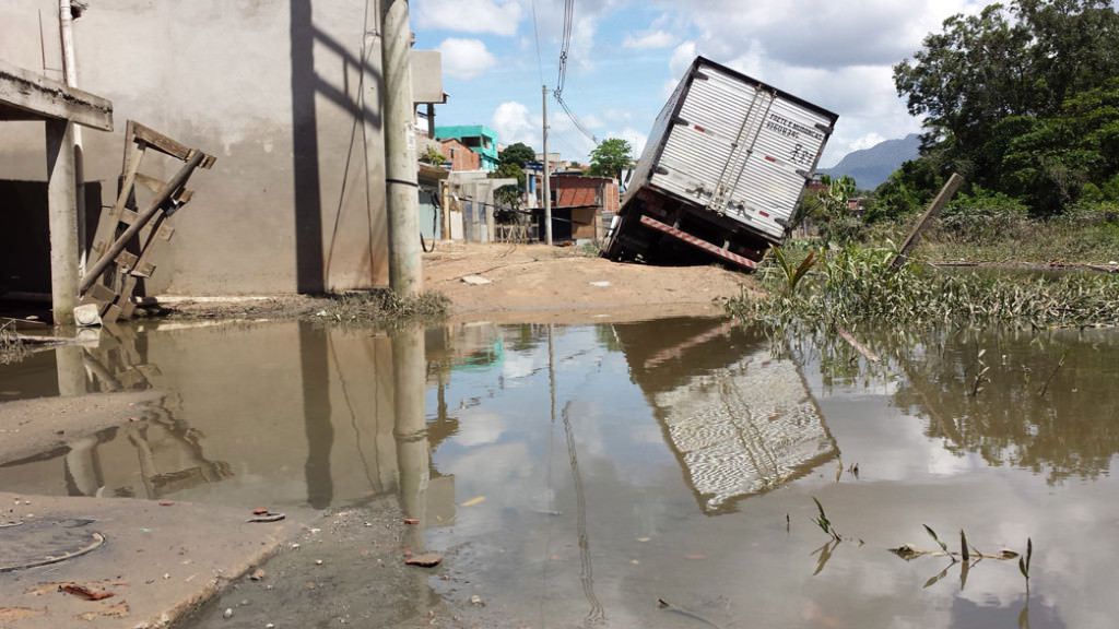 Na manhã de hoje ainda havia casas inundadas com a água contaminada no bairro. Segundo o morador Weber de Araújo, cerca de 70 casas foram atingidas pela enchente que veio com óleo.