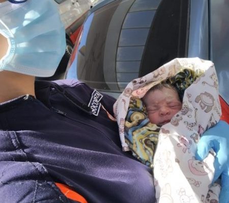 Ao chegarem no local, logo informaram que a mamãe estava prestes a dar a luz. Naquele momento, os funcionários do posto acharam que seria apenas um abastecimento de emergência para que os pais chegassem logo em um hospital, mas quando uma frentista do estabelecimento olhou para dentro do carro, já viu que a cabeça de Emanuelle estava para fora. No mesmo instante, a funcionária ligou para o Samu e foi até a loja de conveniência pegar uma pano ou toalha.