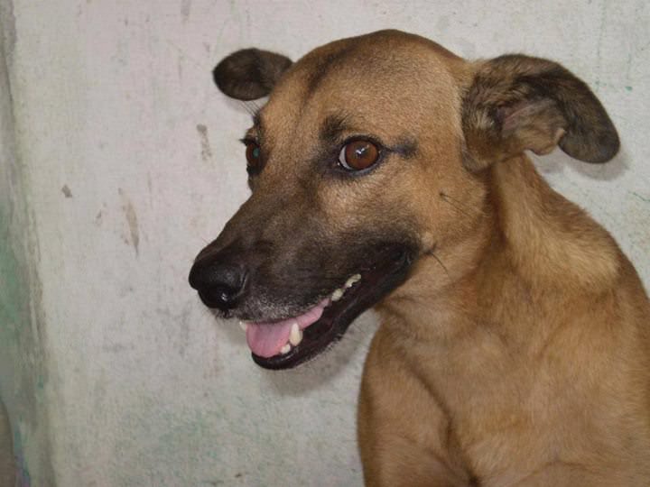 Esse sorriso tímido é do Chico. Cachorro resgatado pela Fernanda Tinelli, de Nova Almeida.