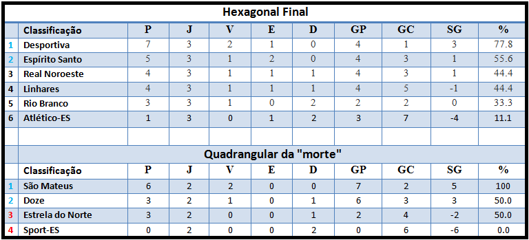 Já na quarta (30), outros dois jogos concluem a rodada do hexagonal final. Líder e vice vão a campo para disputar forças. A Desportiva recebe o Espírito Santo, no Engenheiro Araripe, às 19h15. A Tiva se vencer, vai abrir boa vantagem na busca da grande final. O ES, é vice-líder e vale lembrar que o time veio da Série B, e do título da Copa Espírito Santo 2015.