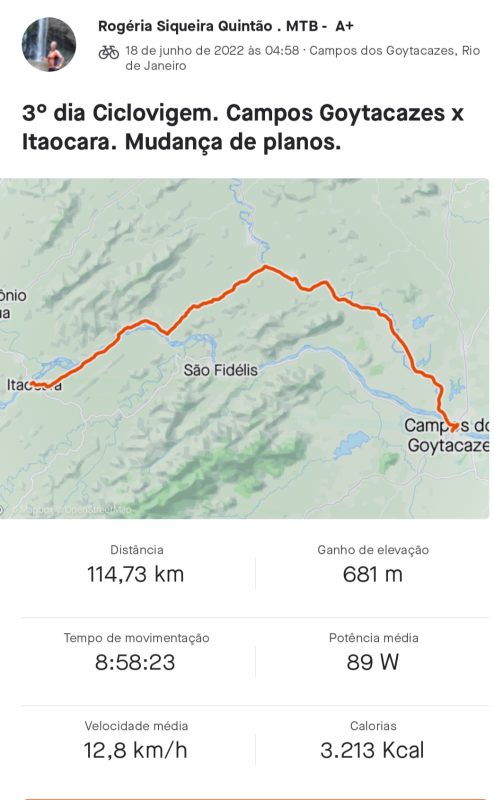 No primeiro dia, as ciclistas pedalaram 177km, da Serra à Barra do Itabapoana; no segundo, 97km, de Barra do Itabapoana a Campos do Goytacazes; no terceiro, 114km, de Campos do Goytacazes a Itaocara.