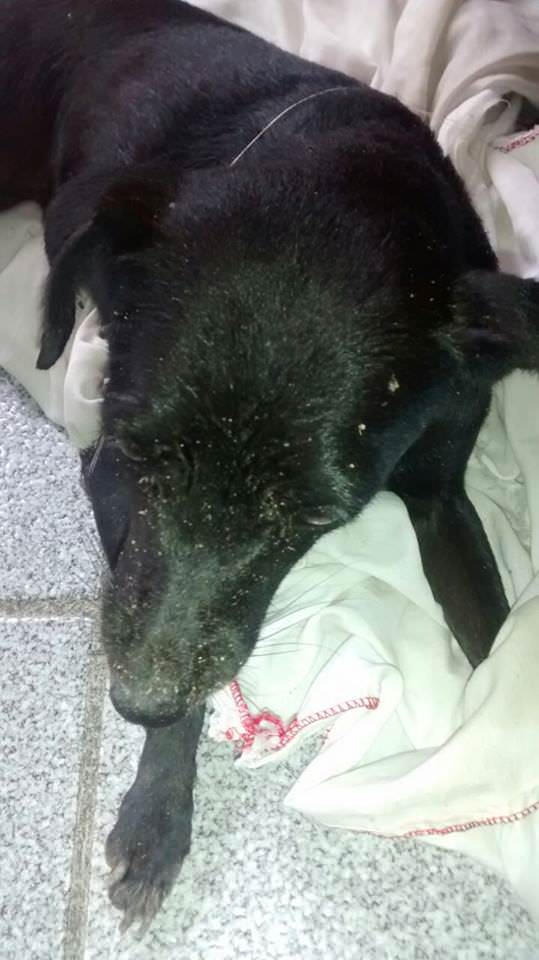 Mariola está com fratura de pelve e possivelmente de coluna, não está evacuando nem urinando. Está aos cuidados de veterinária Patrícia R. Oliveira.