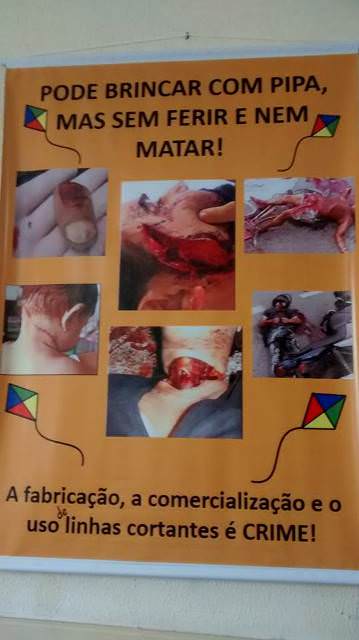 Uma postagem no Facebook de um funcionário da escola municipal Dom Helder Câmara em Jacaraípe na Serra chamou a atenção. É que a sala de aula tem um banner com imagens chocantes de pessoas que foram vítimas de cerol em linha de pipa.