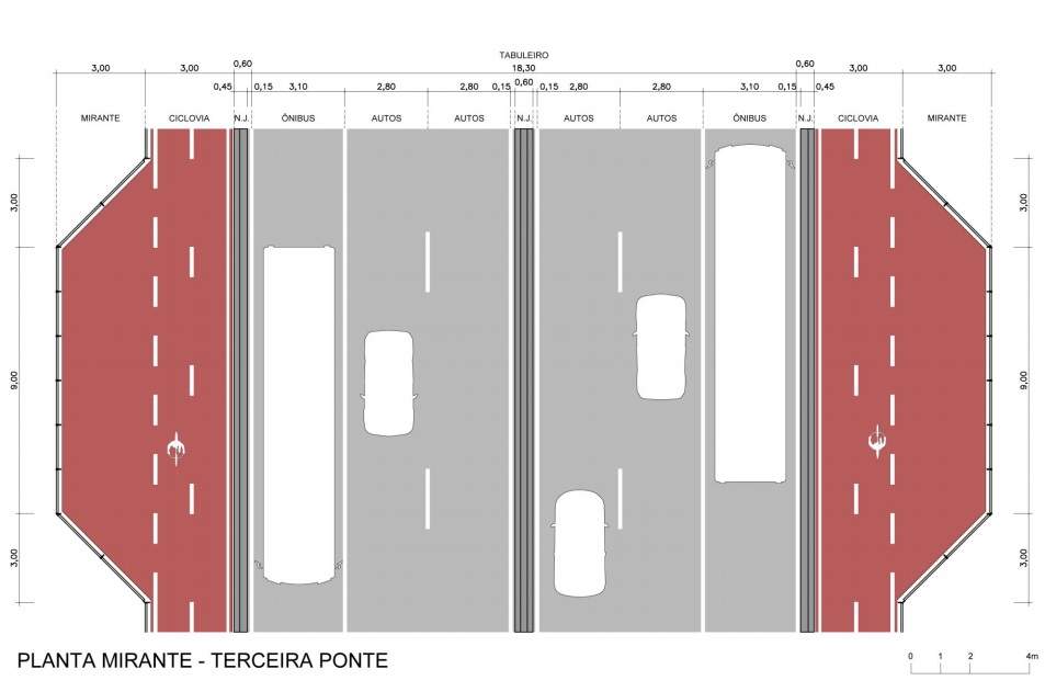 Além disso, a ponte contará com seis faixas para veículos. Sendo uma delas exclusiva para ônibus, táxis e caminhões. O secretário de Mobilidade e Infraestrutura, Fábio Damasceno, disse durante a coletiva que a nova faixa é uma “linha verde”, igual a que foi criada pela Prefeitura de Vitória na orla de Camburi.