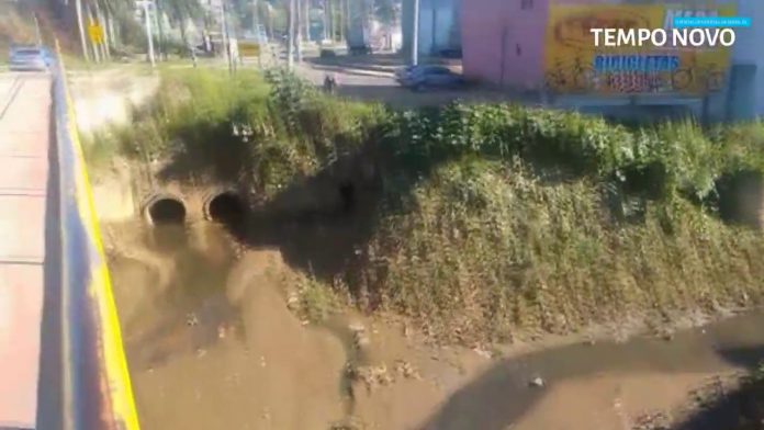 São escuras e fétidas as águas que descem da Serra Sede e ajudam a formar a lagoa Juara. Vídeo feito pela equipe de Tempo Novo no último dia 16 de outubro mostra a situação do córrego Doutor Róbson sob a ponte da BR 101, entre Vista da Serra e Planalto Serrano.