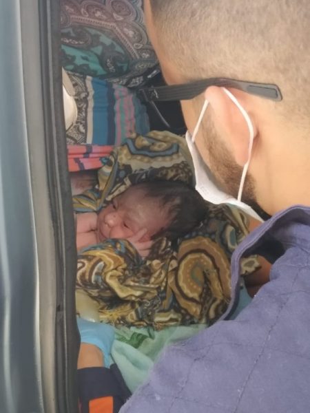 Ao chegarem no local, logo informaram que a mamãe estava prestes a dar a luz. Naquele momento, os funcionários do posto acharam que seria apenas um abastecimento de emergência para que os pais chegassem logo em um hospital, mas quando uma frentista do estabelecimento olhou para dentro do carro, já viu que a cabeça de Emanuelle estava para fora. No mesmo instante, a funcionária ligou para o Samu e foi até a loja de conveniência pegar uma pano ou toalha.