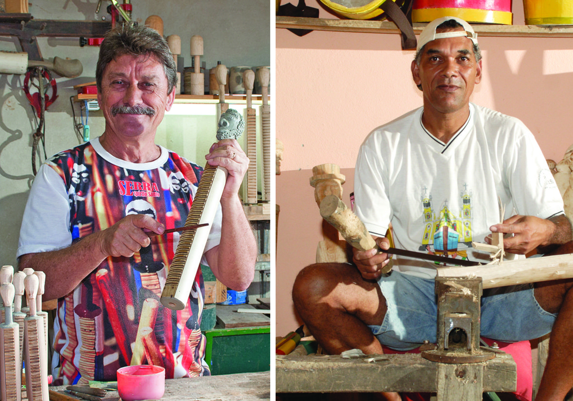 Outro luthier de instrumentos usados no congo é Expedito Andrade, morador do Residencial Centro da Serra. São vinte anos construindo casaca, tambor, bumbo e cuíca. “Passamos o ofício para os mais jovens, para que elas transmitam para a próxima geração também”, destaca Mestre Expedito, da banda de congo Santo Expedito, da Serra-Sede.