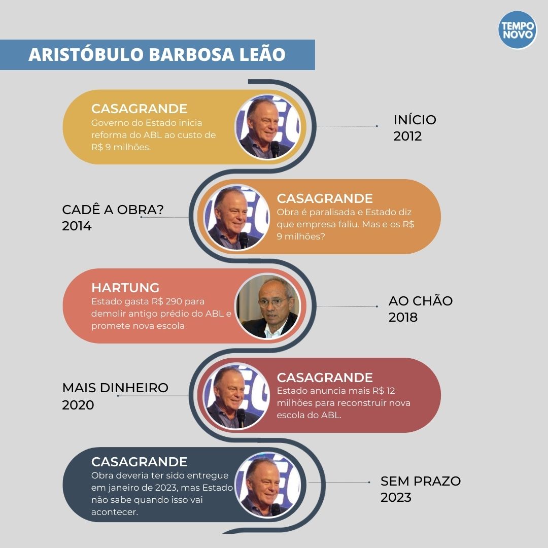 Uma obra que perdura há 12 anos, que já desperdiçou R$ 14 milhões de dinheiro público e que segue na incerteza de se um dia será concluída. É fato: estamos falando da milionária reconstrução da Escola Estadual Aristóbulo Barbosa Leão (ABL), em Parque Residencial Laranjeiras, na Serra. Iniciada em 2012, a obra foi paralisada em 2014, demolida em 2018 e reiniciada em 2020.