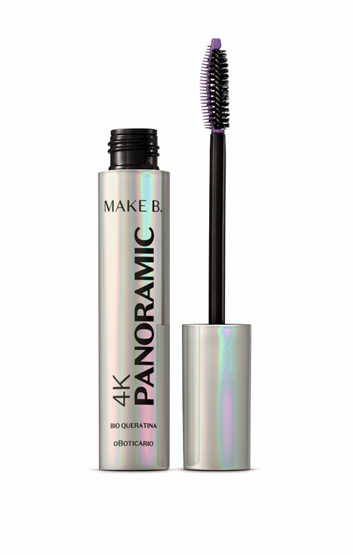 A máscara para cílios 4K Panoramic, de Make B., traz a combinação perfeita de bioqueratina, que protege os fios por meio da reposição de proteína e deixa os fios 10% mais fortes e resistentes. O aplicador de duplo efeito, com cerdas que alcançam até os cílios mais difíceis, entrega 1.000% mais volume e 600% mais definição.