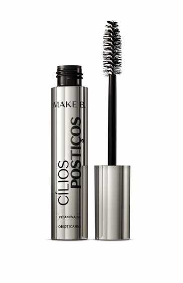 A Máscara de Cílios Make B. Efeito Cílios Postiços garante o volume, a curvatura e a espessura dos cílios. A fórmula conta com pantenol, que auxilia na nutrição dos fios, e tem um aplicador de nylon que penteia os cílios para maior definição, deixando-os mais espessos e volumosos da raiz às pontas.