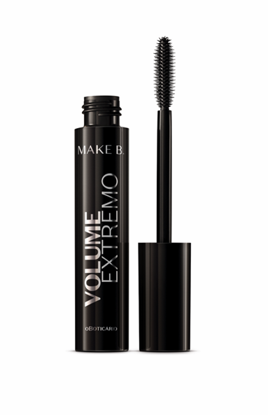 A Máscara de Cílios Make B. Volume Extremo aumenta em 12 vezes o volume dos seus cílios instantaneamente, com duração de até 8 horas, efeito ultrapigmentado e efeito lifting alongado, com uma combinação de ativos que auxiliam na nutrição e no condicionamento dos fios. Aplicação perfeita que não forma grumos, não borra ao longo do dia e é fácil de remover.