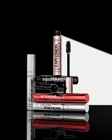 A Make B. Panoramic 4K entrega tecnologia de Bioqueratina que repõe a proteína dos cílios, dando mais força, resistência e restaurando aqueles fios danificados, enquanto garante 600% mais definição panorâmica dos cílios, além de volume. Já a fórmula da Make B. Scandallashes conta com óleo de coco, para manter os cílios hidratados mesmo quando maquiados, garantindo 38 vezes mais volume e seis vezes mais curvatura em até nove horas de duração. Para quem quer apostar no volume, na curvatura e na espessura dos fios, a Make B. Efeito Cílios Postiços garante máxima definição, devido ao aplicador de nylon dele e o Pantenol presente na formulação, que auxilia na nutrição dos fios. Outra máscara que garante uma maquiagem intacta por muito mais tempo e ainda entrega 12 vezes mais volume e efeito lifting alongado é a Make B. Volume Extremo – ultrapigmentada, com uma combinação de ativos que auxiliam na nutrição e no condicionamento dos cílios.