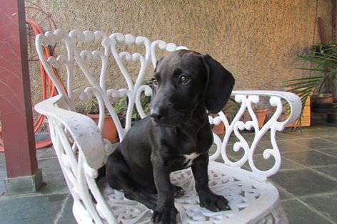 Ele precisa de adoção urgente ou lar temporário. Deve pesar uma média de três quilos, é macho, porte pequeno e mestiço de basset.