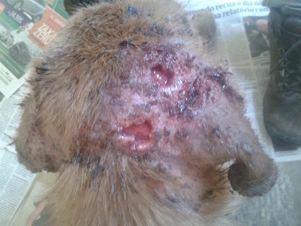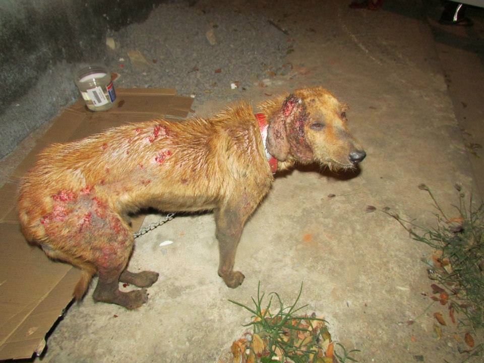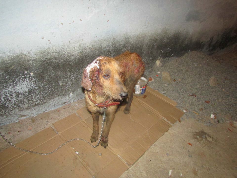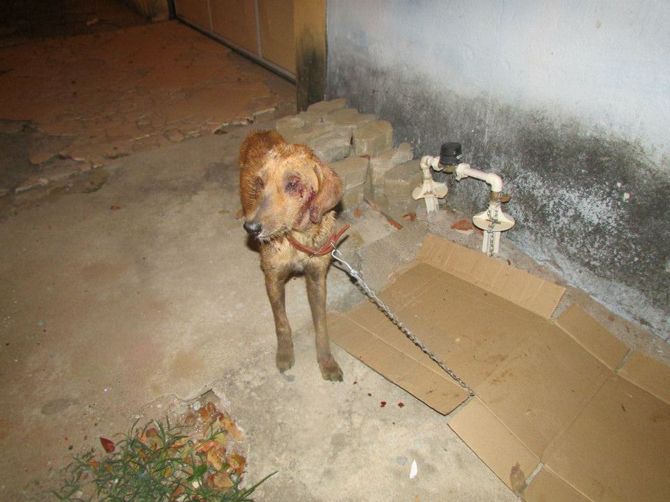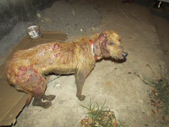 O animal foi espancado e maltratado por seus ex-donos que eram dependentes químicos. O cão estava com o corpo tomado por feridas e tinha muita sarna. Pirulito sofreu demais nas ruas, foi espancado, enxotado e ficou doente.