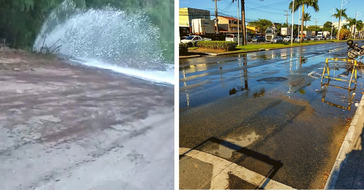 Um deles acontece em Cidade Pomar, na avenida Norte Sul que liga o bairro a rodovia BR 101. Por lá, o vazamento é imenso, muitos litros de água estão sendo desperdiçados enquanto o reparo no problema não é solucionado. A denúncia é de um morador que não se identificou e a situação acontece desde às 7h.