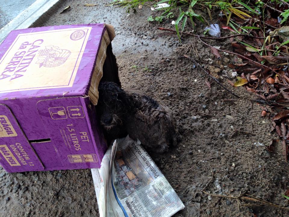 Esse cachorrinho foi encontrado na Avenida Norte Sul, na Serra. Ele está com fratura exposta na pata traseira e aparentemente as duas dianteiras parecem estar quebrada. Um casal com muito amor no coração resgatou e levou o animal para casa.