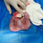 Bolinha foi levada às pressas a clínica veterinária e foram feitos vários exames. Foi constatado que haviam fetos mortos e fezes empedradas. Ela fez uma cirurgia de emergência, onde os fetos, que deveriam estar lá há um tempo, pois estavam em estado de decomposição, foram retirados, e também seu útero, que já apresentava piometra. Uma cirurgia longa, mas, Bolinha suportou.