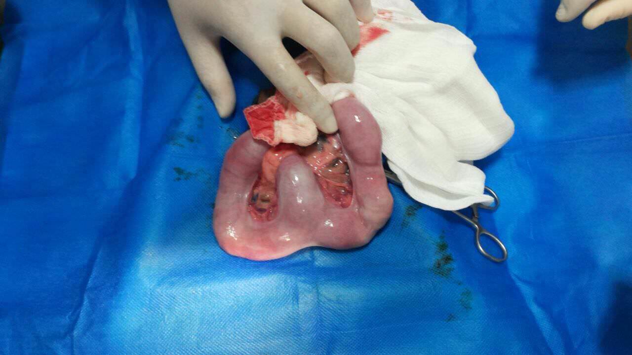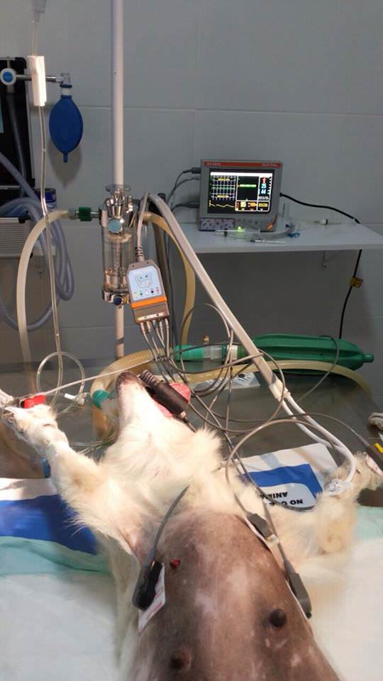 Bolinha foi levada às pressas a clínica veterinária e foram feitos vários exames. Foi constatado que haviam fetos mortos e fezes empedradas. Ela fez uma cirurgia de emergência, onde os fetos, que deveriam estar lá há um tempo, pois estavam em estado de decomposição, foram retirados, e também seu útero, que já apresentava piometra. Uma cirurgia longa, mas, Bolinha suportou.