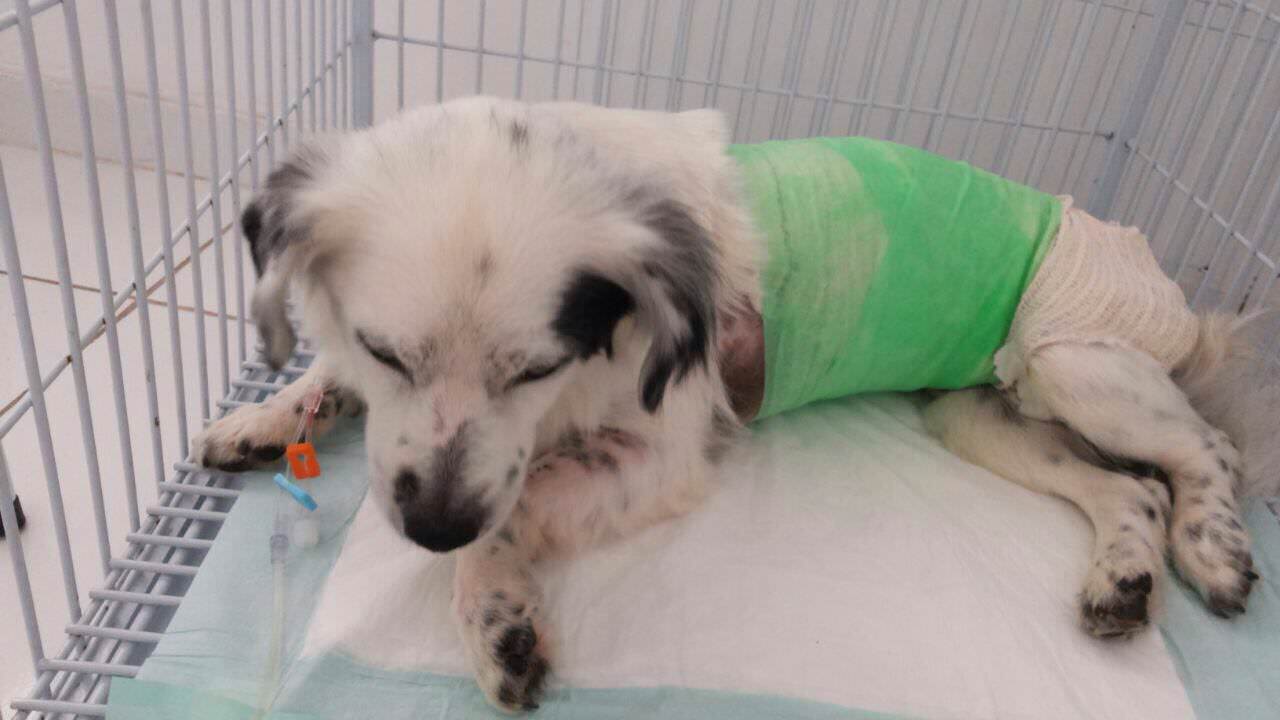 Ela foi resgatada no meio da estrada, local que foi abandonada para morrer. Esta doente, com um problema chamado piometra – infecção uterina grave. Ela foi resgatada pela protetora Carmem Falcão, parceira do Auau Carente da Livia Guimarães, de Valparaíso.