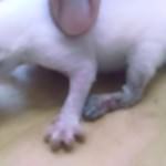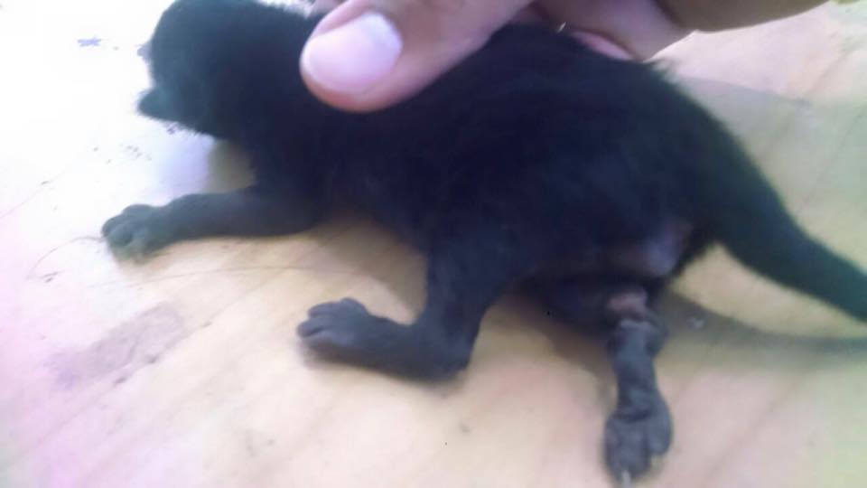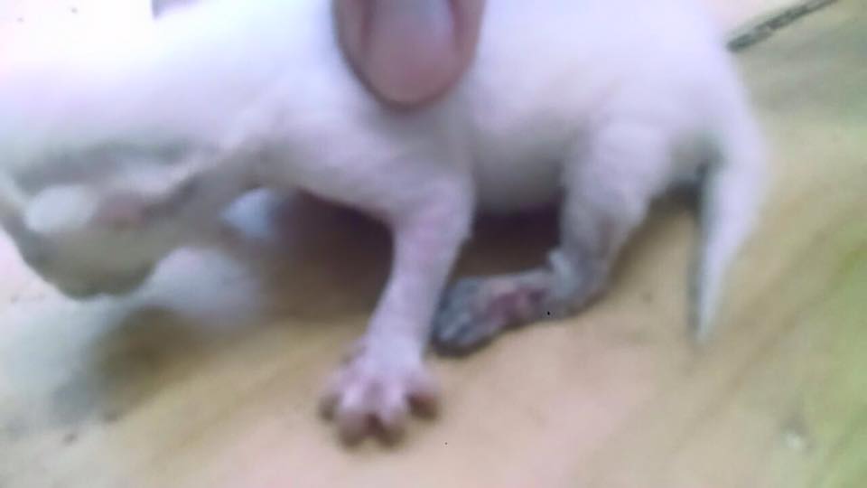 Esse fim de semana ela deu a luz a seis filhotes e dois deles nasceram com deficiência nas patinhas traseiras.