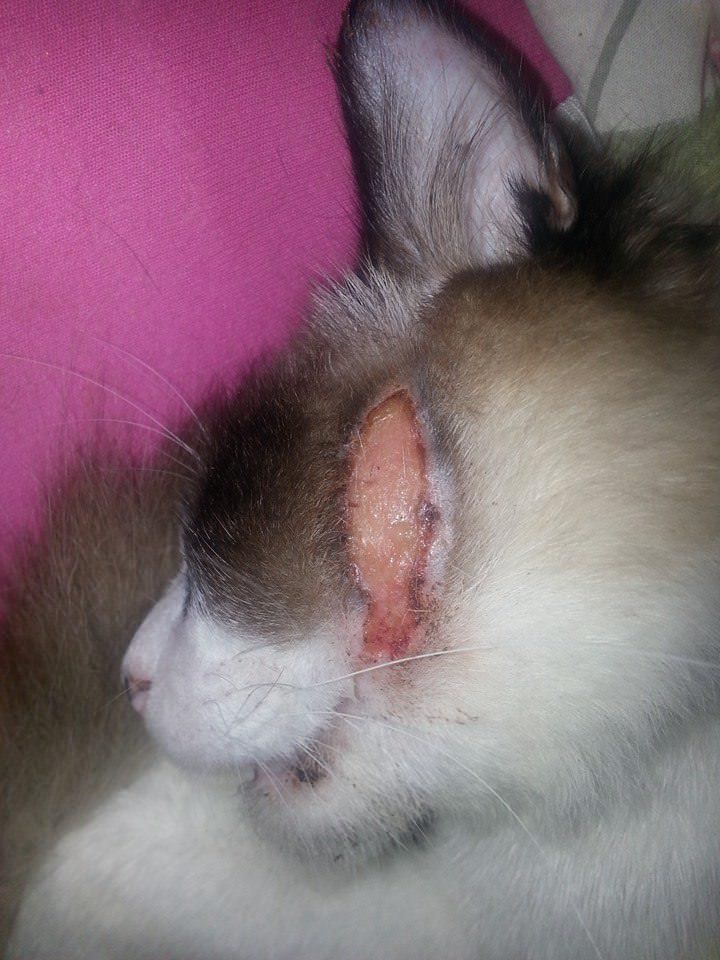 A sonda já estava infeccionada e podre, causando forte dor ao animal, que já não conseguia levantar e nem se alimentar. Ele foi encaminhado para o CCZ de Vila Velha, onde foi muito bem atendido e cuidado nos primeiros dias.