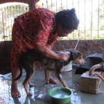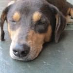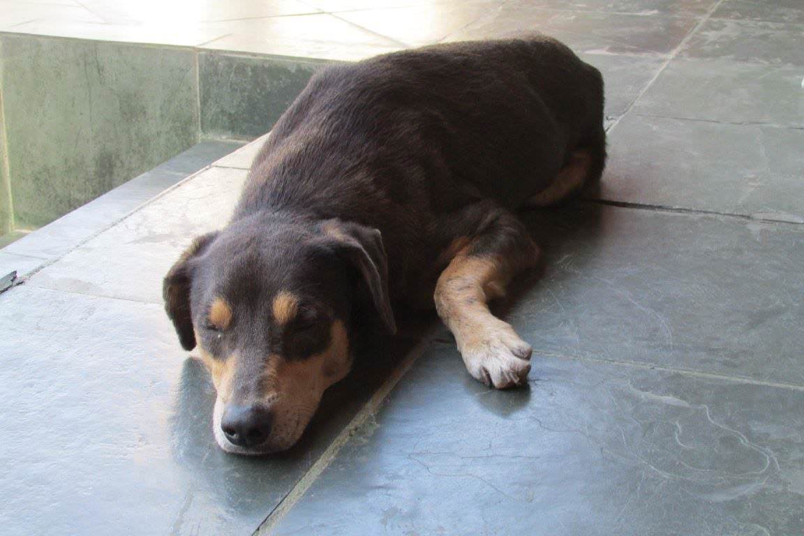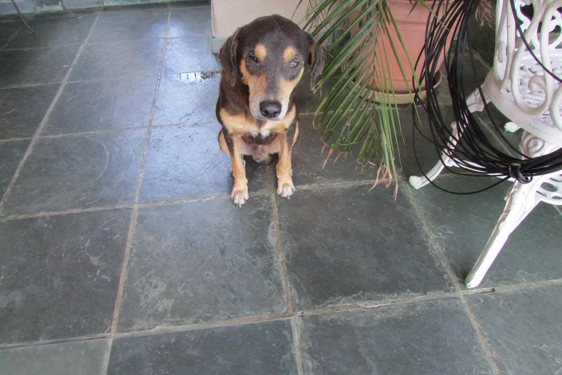 O animal está fraco e debilitado, com muita pulga e carrapato. Eliana que já possui outras dezenas de cães, não pensou duas vezes, levou o cãozinho para sua casa.