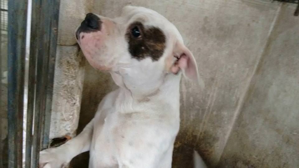 Segundo informações de funcionários, o animal é muito manso e dócil e aparenta ser da raça American Starforchaire/Pit bull.