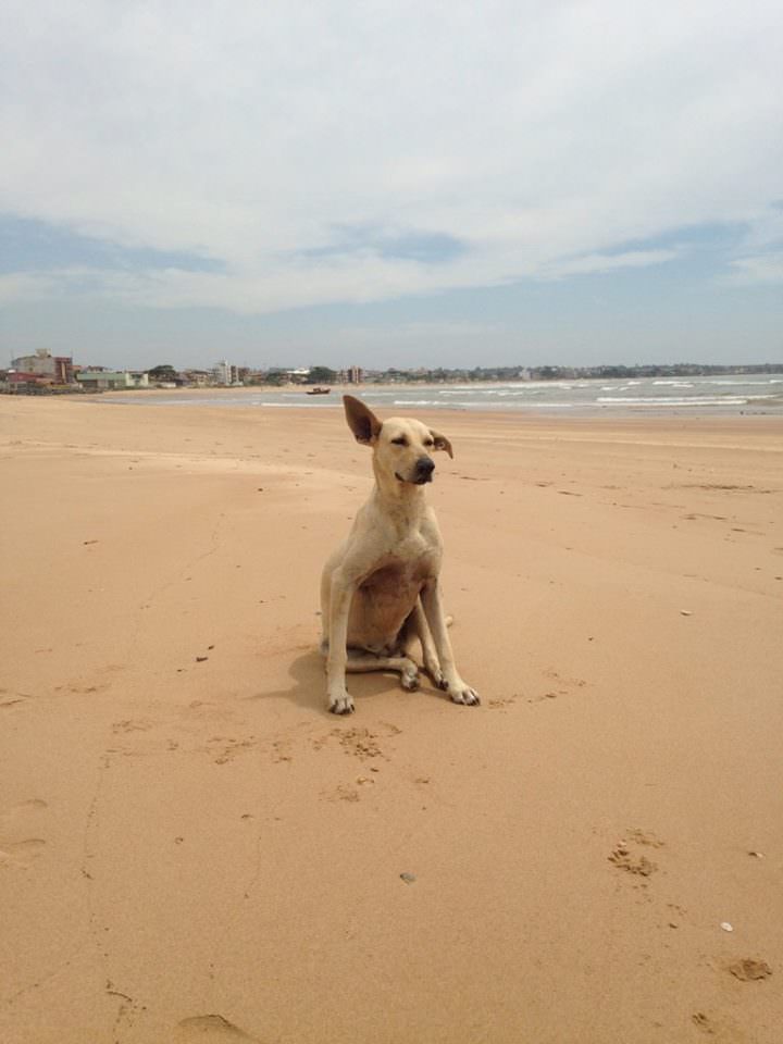 Esta é a Branca, uma cadela de rua que apareceu na orla de Nova Almeida e foi “adotada” pelos moradores do balneário.