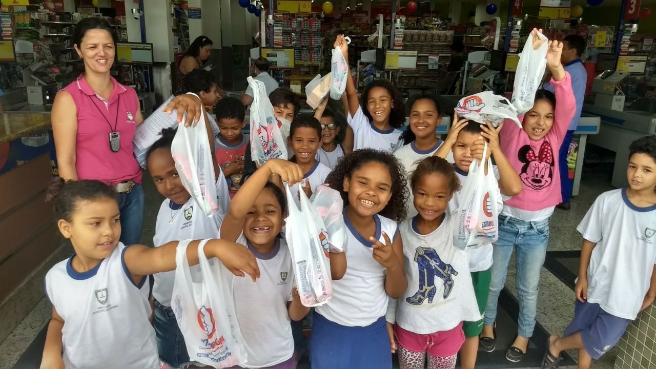 Alunos do 2° ano do ensino fundamental da escola EMEF Feu Rosa estiveram nesta segunda-feira (30) no supermercado Extra Bom do bairro para uma aula prática. O objetivo dessa aula diferenciada foi descobrir por meio de atividades práticas e situações cotidianas os conceitos de matemática.