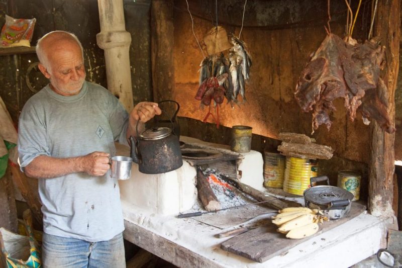 Seu Bino, para quem não conhece, vive no Mestre Álvaro há onze anos, ao lado de Serra Sede, a 400 metros de altitude. É um senhor de 65 anos que mora na montanha, sem energia. “Ele toma banho numa nascente, vive sozinho e desce uma vez por mês para comprar mantimentos na cidade”, conta Edson Reis.