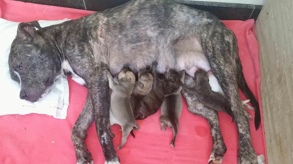 Precisou fazer ultrassom e não conseguiu parir, sendo submetida a uma cesariana. Dos onze filhotes, apenas sete sobreviveram.