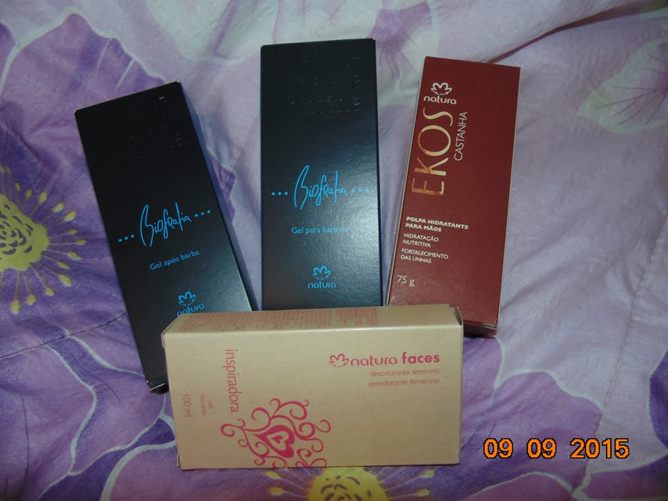 Atualmente duas rifas estão acontecendo uma é Cesta de kits natura com gel para barbear biografia; gel após barba; polpa hidratante para as mãos e desodorante feminino faces.
