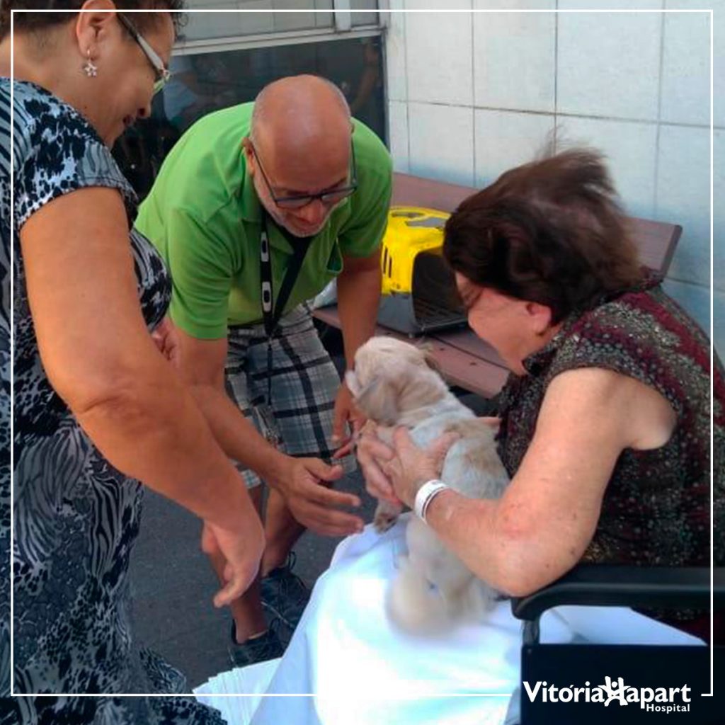 Pioneiro no Espírito Santo nessa área, o Vitória Apart Hospital (VAH), em Carapina, na Serra, recebeu, na semana passada, um desses visitantes de quatro patas. A cachorrinha Natali visitou sua dona, que estava internada no hospital e já recebeu alta.