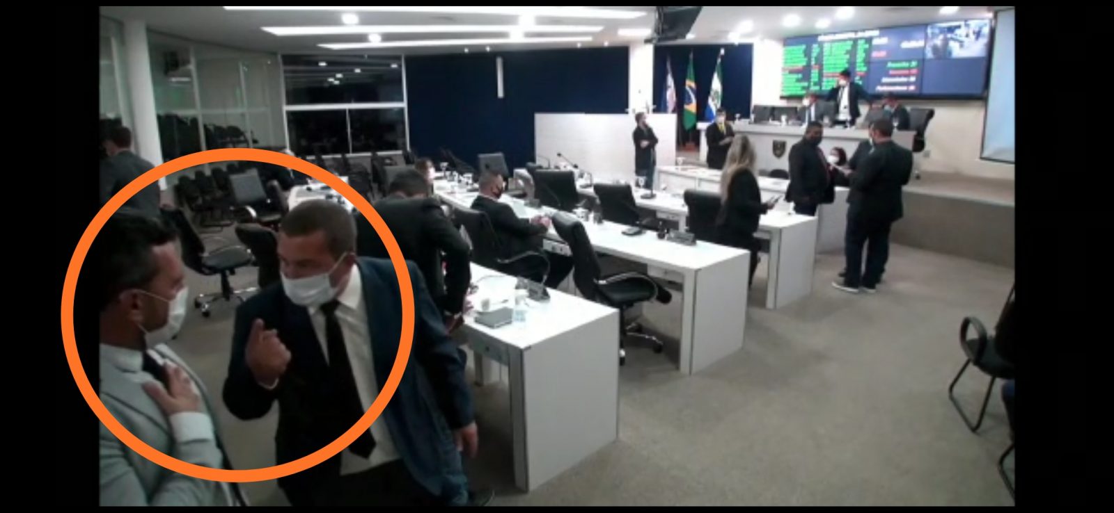 A gravação da Câmara, publicada acima na reportagem, não pega os vereadores trocando socos, mas mostra o momento em que ambos foram caminhando até o corredor enquanto mantinham uma intensa discussão, poucos segundos depois, os colegas parlamentares correm em direção a eles para apartar a briga.