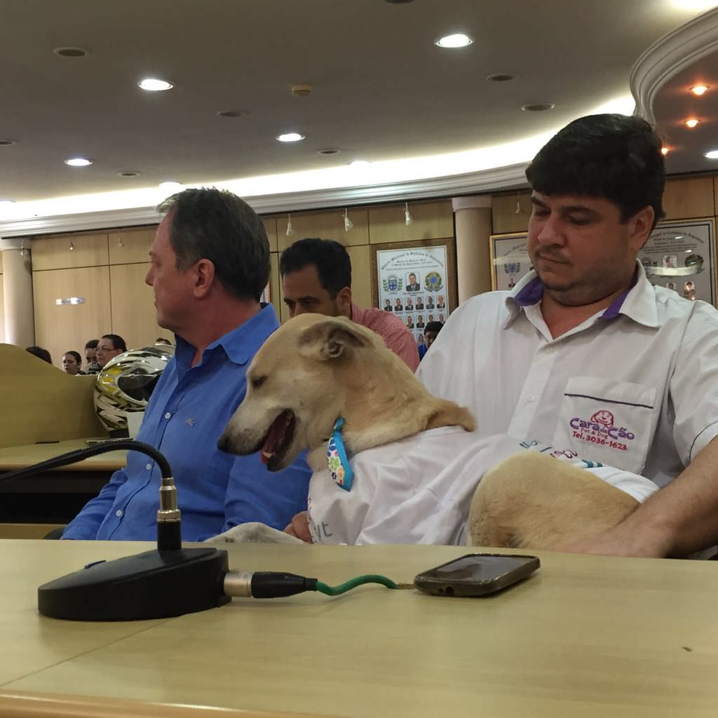 O animal foi levado à sessão da CPI a pedido do médico veterinário que está cuidando dele desde o dia da agressão. porque está sendo divulgado nas redes sociais que o cachorro espancado pela idosa teria morrido e foi substituído por outro. “Nós da CPI não negamos o pedido do veterinário porque a presença de Ambrósio serviu para esclarecer todos os boatos que estão sendo divulgados a respeito do caso e a atuação dos protetores de animais que realizam um trabalho sério na defesa da causa animal. Também ficou comprovado que o cachorro agredido é um animal dócil e tem se recuperado da injusta agressão que sofreu”, declarou a presidente da CPI deputada Janete de Sá.