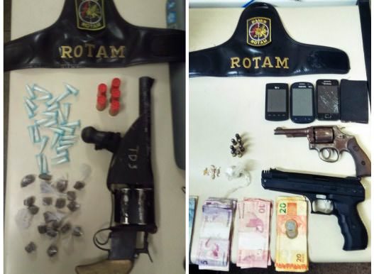 Também foram abordadas e detidas mais três pessoas. Os Policiais Militares também encontraram um simulacro de pistola (uma espécie de arma de brinquedo), seis pedras de crack e uma munição de calibre 38.