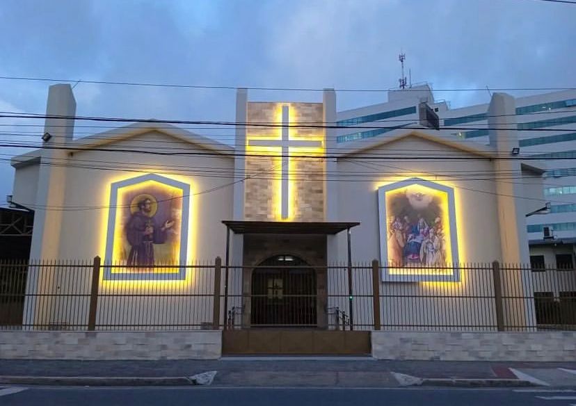 Quem passar pela Primeira Avenida, em Laranjeiras e voltar o seu olhar para a Igreja Católica, em frente ao semáforo, vai notar uma grande diferença na fachada da mesma, principalmente se for à noite.