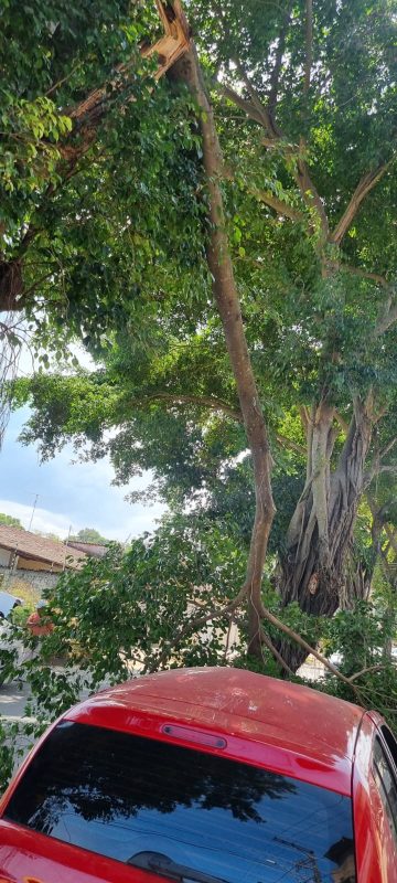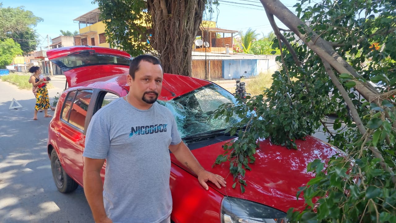 “Estava eu e minha esposa e minha irmã; eu estava conduzindo e a árvore caiu em cima da gente. Graças a Deus ninguém se machucou, mas tivemos um prejuízo”, relata o condutor, Júlio Cezar.