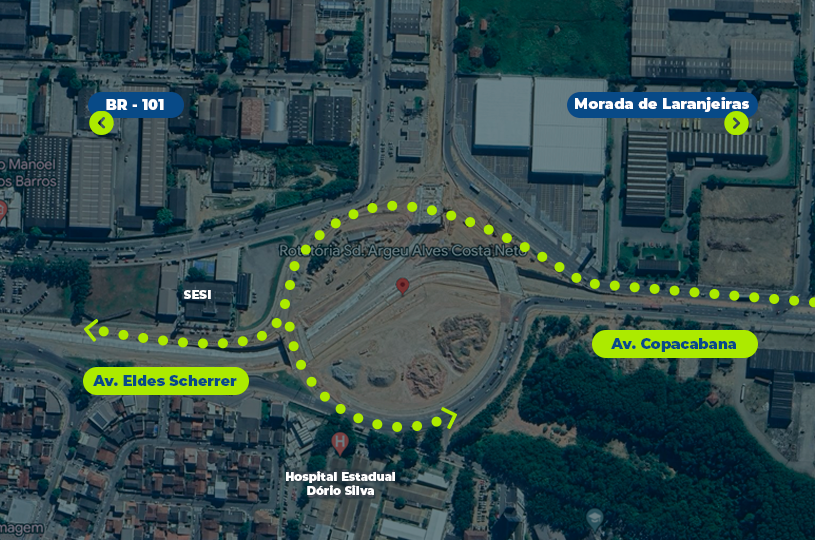 Com a inauguração desta passagem, a Secretaria de Obras libera o trânsito de veículos na avenida Eldes Scherrer de Souza em frente ao Sesi de Laranjeiras (sentido BR-101), que estava interditada para as obras.