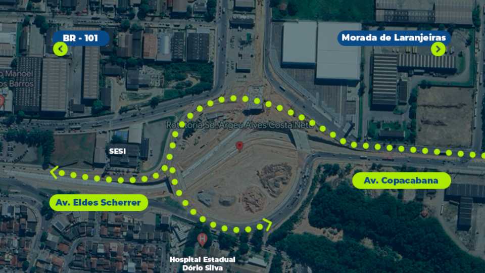 Com a inauguração desta passagem, a Secretaria de Obras libera o trânsito de veículos na avenida Eldes Scherrer de Souza em frente ao Sesi de Laranjeiras (sentido BR-101), que estava interditada para as obras.