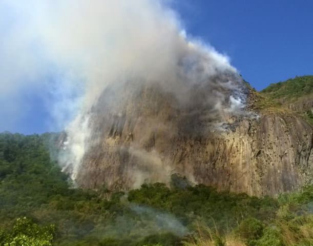 “Não tenho estimativa da área queimada. Mas afetou mata e muitas bromélias que ficam na pedra, centenas delas caíram após a passagem do fogo”, lamenta.