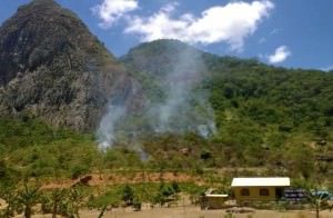 Apesar do esforço dos ativistas a informação da internauta Maria Beatriz é de que focos de incêndio voltaram a aparecer no morro nesta segunda (19).