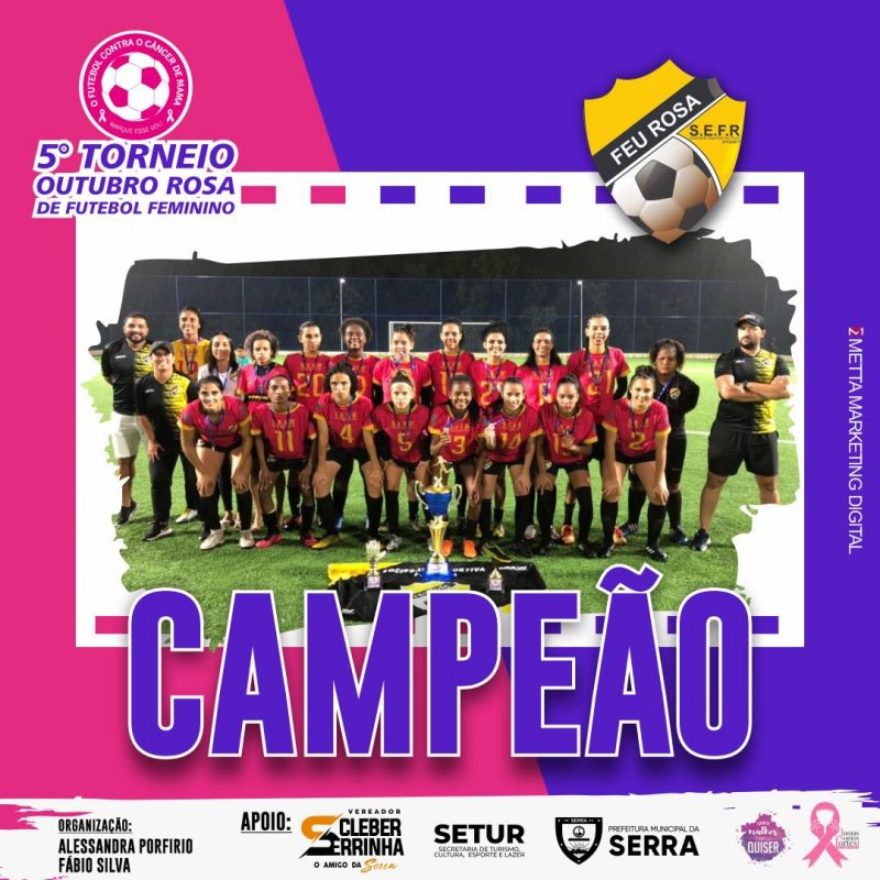 As meninas do futebol feminino do time do Feu Rosa foram as grandes campeãs do 5º Torneio Outubro Rosa de Futebol Feminino que aconteceu no Parque Caminho do Mar, em Bicanga. A equipe vice-campeã foi o Fortaleza e o terceiro lugar ficou com as atletas do Universo.