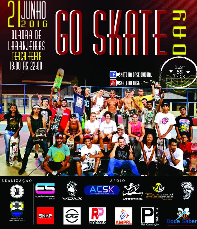 Hoje (21) vai acontecer em Laranjeiras, na Praça Miguel Ângelo, o evento Go Skate Day. A agenda acontece daqui a pouco, das 18h às 22h.