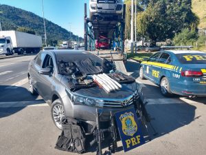 A Polícia Rodoviária Federal (PRF) apreendeu quatro fuzis, cinco dinamites e mais de 280 munições...